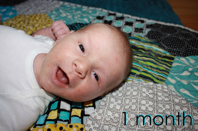 He had his 1 month appointment today and is 9lbs 2oz. 21 3/4″ long. Growing really great. :) The past couple of days he is starting to talk to us and coo, and even laugh a bit. It is so much fun to see him change, but I also just want him to stay this size forever.