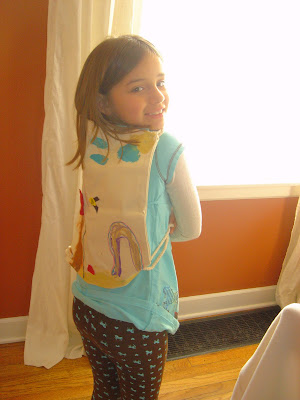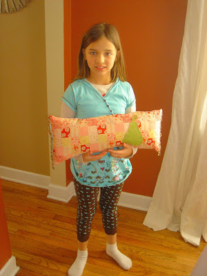 We made this cool pillow with a hand stitched pear and glass beads. ( She did all the sewing herself, machine and hand)