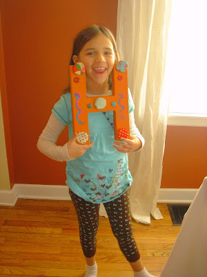 We painted this H for Hannah, and glued on some random fun stuff from around my craft stash.
