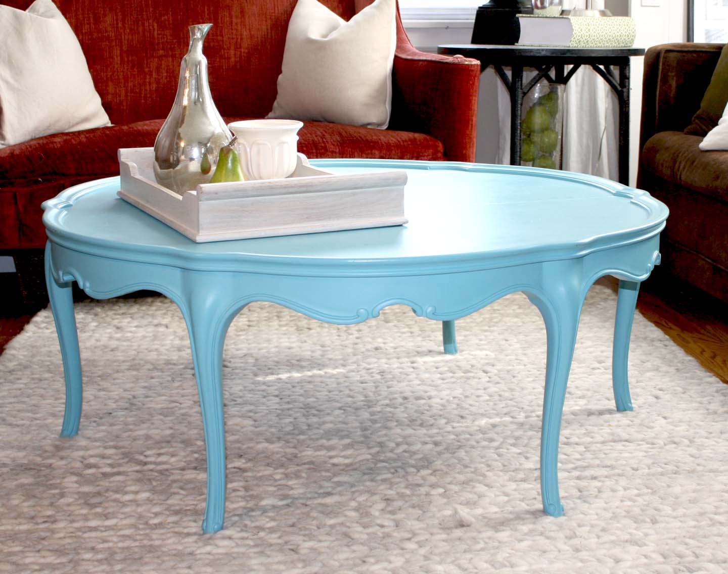 I purchased this coffee table last year for $15 at a local thrift store. We previously had a rectangle coffee table that made it difficult to manuver in our little Living Room. So the circle table is working great for that. I painted it this shade of aqua when I purchased it but I was intending it to be darker.