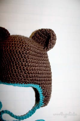 The Bear Hat. It was a super fast project. I was able to crochet it is one night and one afternoon and I think it is too cute. I used this pattern and made a few alterations.