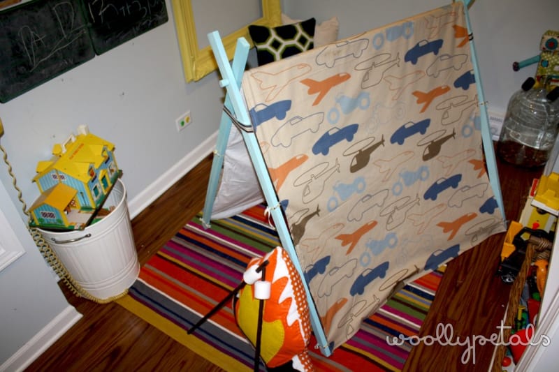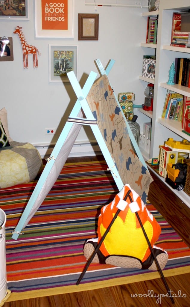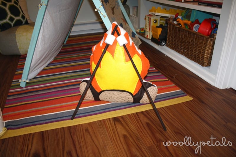 I came across this campfire pillow idea from Michelle at vintagejunky and thought it was genius. So I whipped up one to go with the tent.
