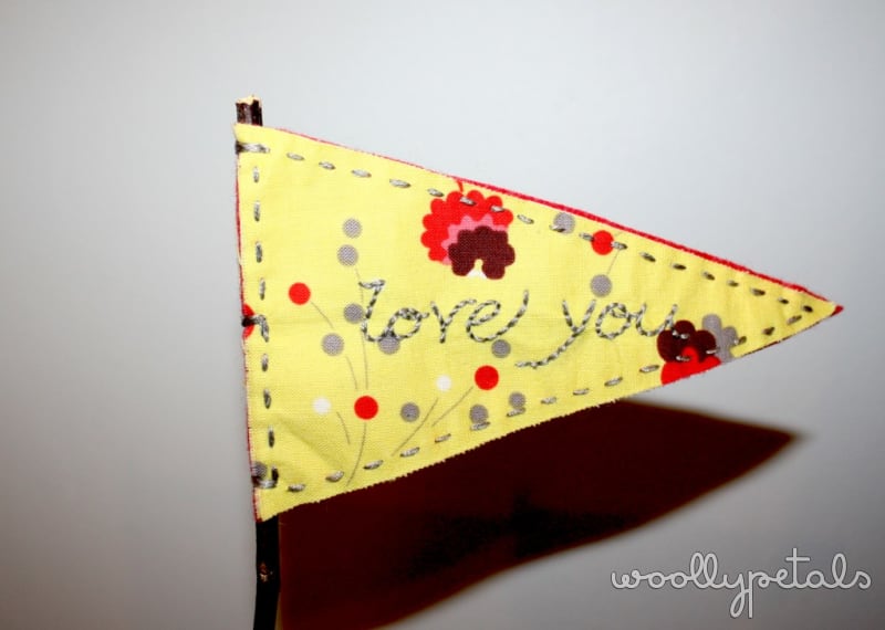 A little love for somebody! This is a hand embroidered love you fabric and felt flag. This would be a gift for someone special to you. Or heck we all need a little reminding that we are loved! ;)