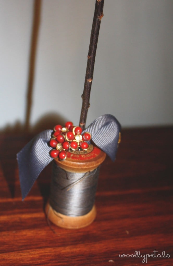 The spool base has a vintage earring and some ribbon for a little extra detail!