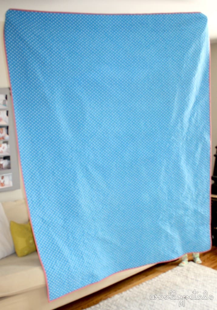 Sorry this one is blurry but I didn't realize it till after the quilts where gone. :) It's just a simple blue and white polka dot back.