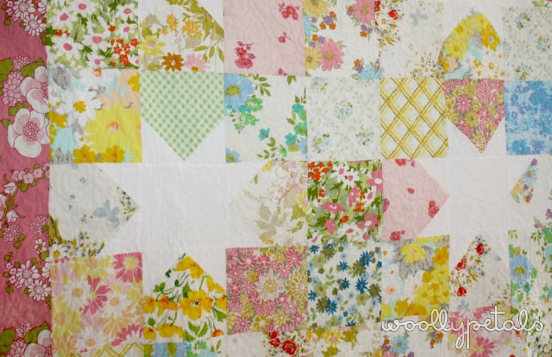 For these two quilts I mainly used pillowcases, with a couple different prints from whole sheets that where cut into. I still have tons of vintage sheet fabric left over, so you better believe I will be making more quilts with similar prints.