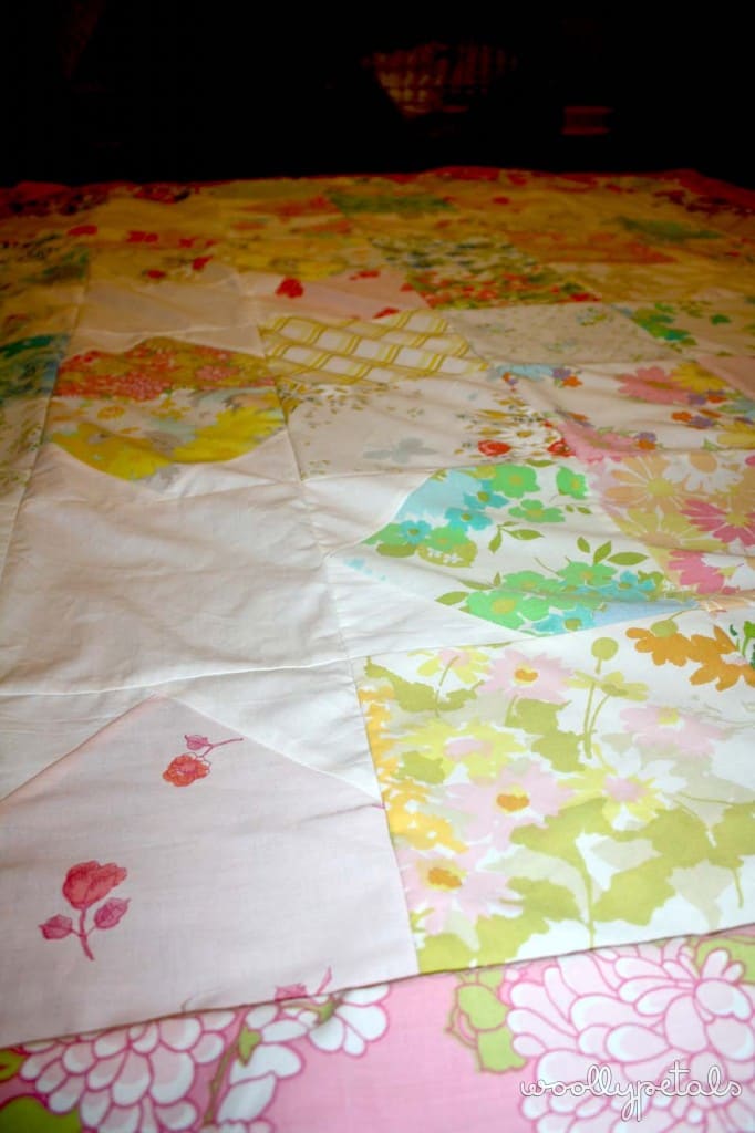 They are made completely with vintage sheets! Yay! It barely diminished my stash so I will be making lots more projects with them. I will of course share the completed quilts when they are done before I send them away.
