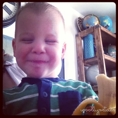 He asked me out of the blue to see himself on the phone camera eating a banana, how could I not oblige / My Husband and I are 5 days into the no sugar and aside from a syrupy sweet glucose test drink this morning we are both cheat free. :) I am getting my sweet fix from lots of fruit and smoothies, I still am really craving chocolate though / This year Luke is bigger and apparently he learned how to climb ladder like things super well