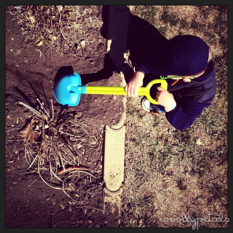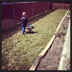 He loves to mow and if I could trust him with a real mower it would be on ;) /He also likes to dig and is better at scooping dirt from one pile to another than he is at scooping food into his mouth ;) / New fabrics I received today from Pink Castle Fabrics sale - LOVE -
