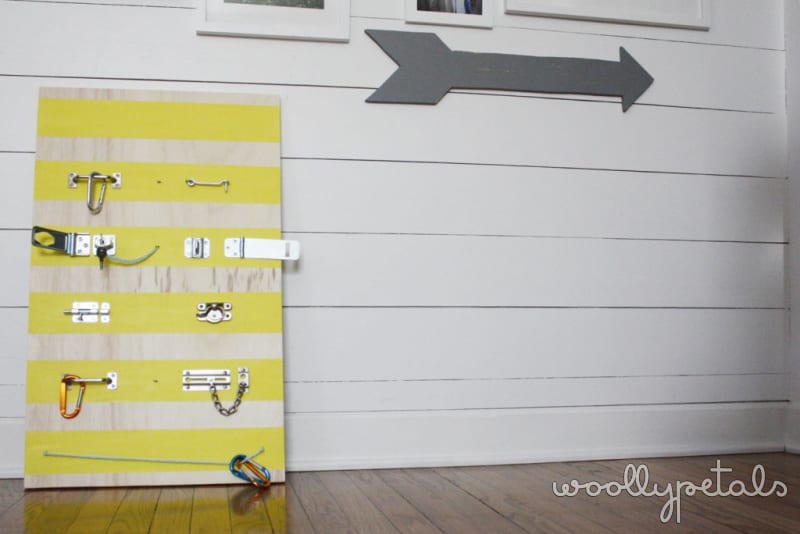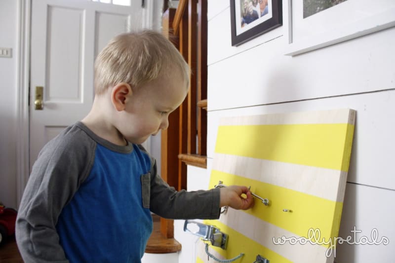 So...I made him a latch board. I have wanted to make one for the past year for him but after seeing Young House Love's they made their daughter this year I put it on the top of the New Year's list. Young House Love's DIY is super comprehensive so if you are looking for detailed pictures of the actual process check out there post.