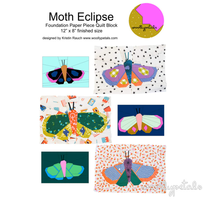 The Moth Eclipse Pattern Released today May 1st 2021. The Moth Eclipse Pattern is a Foundation Paper Pieced Pattern including 3 different moths. In order below, Moth 1, Moth 2, and Moth 3.
