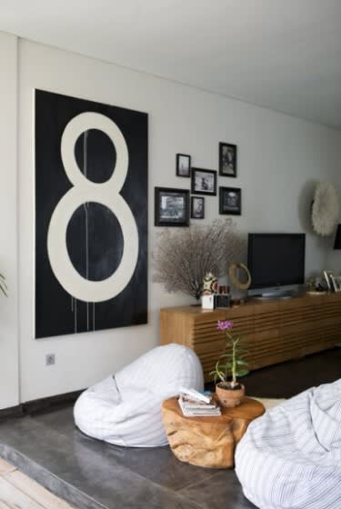 I love the boldness of the 8 art. I like that it's not perfect, the it's a number, and thats it just simple black and white. I also felt like I needed something different above my sofa. I like the instagram frame a ton, but I moved it to the basement to go with my yellow chairs. I just wasn't feeling it above the sofa, so we had blank space. Refresher.