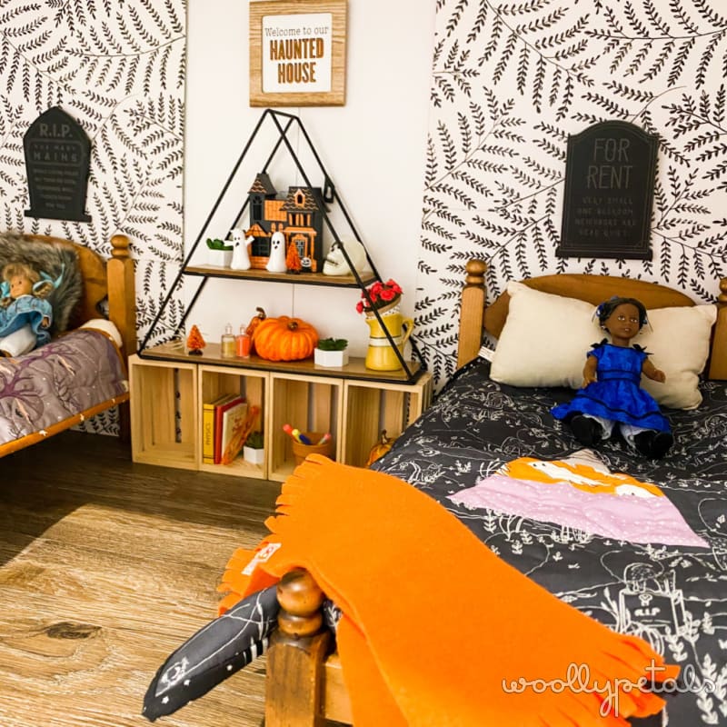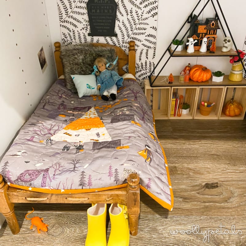 Speaking of doll quilts.. If you didn't know my daughter and I share a passion for American Girl Dolls, I have mine from my childhood and we both have collected more. I LOVE to make doll rooms and my daughter has inherited that as well. lol. So I made two small doll quilts from the Mini Candy Corn free pattern from the Something Wicked QAL newsletters. I will be sharing these mini quilt FPP patterns next year.