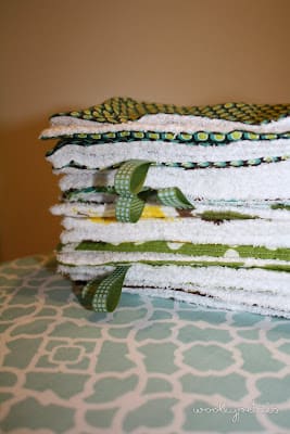 I didn't link since I made most of mine myself. I do have some cloth diapers we use around the house since they aren't as nice. But I always make sure I have the ones I made to take out with us. They are fabric with terry cloth on the other side and larger than the average cloth diaper. I love them. Shameless plug here, I should be selling some in my etsy shop soon. :) (Still use these everyday and not just one a day!)