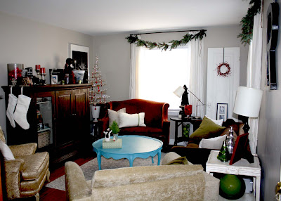 (another view of the living room all Christmas’d up)
