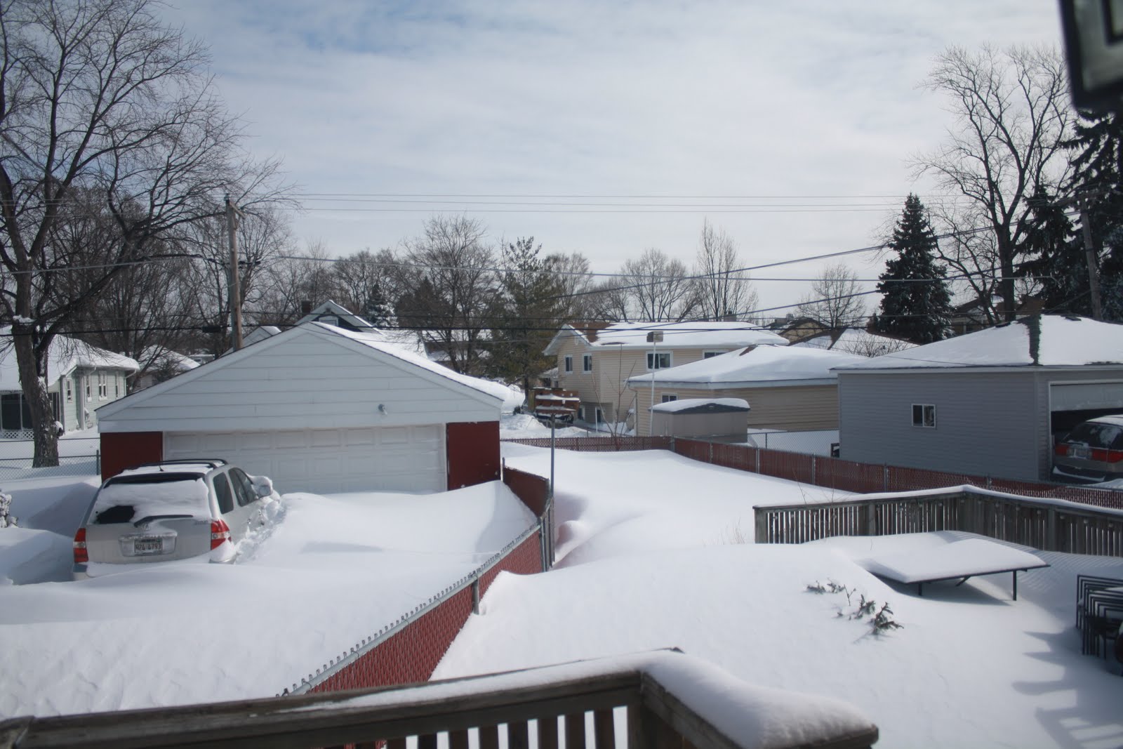 View from our back door to our garage. That is my Acura SUV that is half buried.