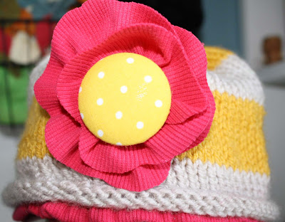 So since there are plenty of little girls in my life I decided to line it with some bubblegum pink jersey and add a BIG jersey flower and yellow button.
