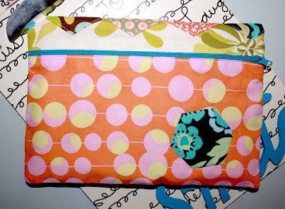 I also made this pouch inspired by old fashion pencil pouches. It is lined, and the back is hexagon fabric. :) My term for lots of hexagons sewn together. :)