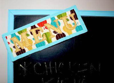 I quilted and hand stitched felt letters on a menu sign to attach to the top.