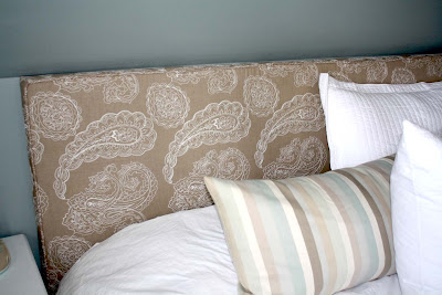 I made an upholstered headboard. This project has been on my list for 4 years now, but I just stumbled across this fabulous fabric a couple of weeks ago and it all fell into place.