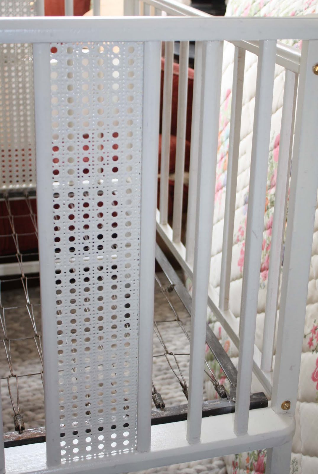 (Vintage mini crib found by mom and me, refinished by dad for baby while in our room 1st 2-3months)