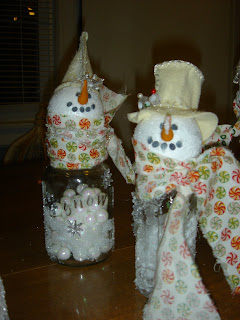 Here are some pictures of some fun little snowmen I have been working on lately. They are made from glass jars and bottles.