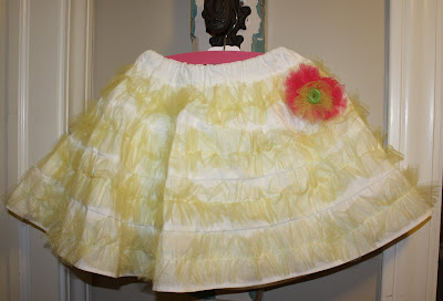 I also made a skirt for another best friends little 4 year old. I saw this tutu skirt, and this ruffly dress on Dana’s blog and thought it would be perfect for my little friend Chloe, who loves all things girlie.