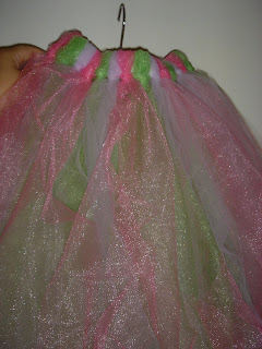 A Fun Twirly Skirt made from lots of shiny tulle’. I have been wanted to make these for awhile, and needed a break from Work sewing today, so here is one of two that I made. I am hoping some happy little girls will wear them home from my upcoming craft show.