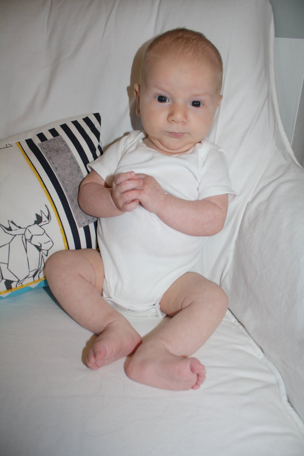 He weighs 11lbs 8oz in the 50% percentile, he is 23 3/4″ long in the 60% percentile, and his head is in the 20% percentile. :) He is a little peanut!